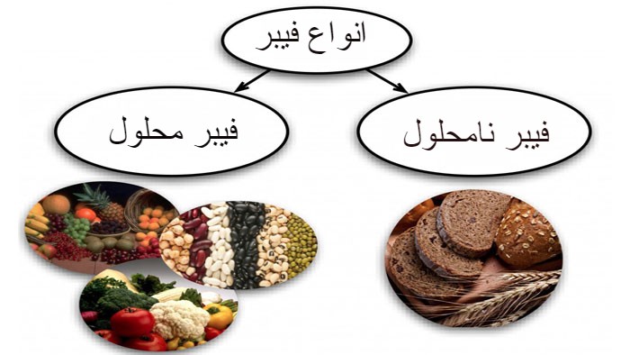 یک تعداد فیبر هم هستند که در آب حل نمی شوند که به آنها نامحلول گفته میشه اینها در واقع چون قابلیت حل شدن ندارن همینجوری دست نخورده از دستگاه گوارش عبور میکنند بیشتر به عنوان یک حجم دهنده عمل میکنند و کمک میکنند که عبور غذا و مواد اضافی از روده سریعتر و راحتتر اتفاق بیافته(مثل لیگنین و سلولز)